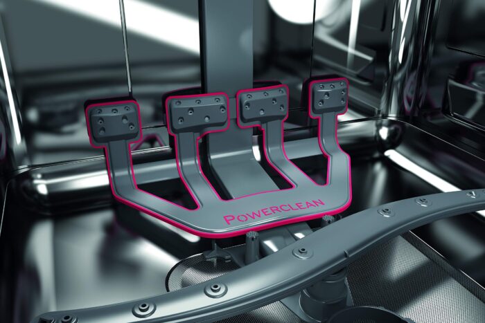 • POWER CLEAN – Die stärkeren Hochdruckdüsen entfernen hartnäckige und eingebrannte Verschmutzungen bis in den letzten Winkel – ganz ohne Vorspülen. Und mit den praktischen Halterungen können Töpfe, Pfannen und Auflaufformen hochkant platziert werden und erhöhen damit die Beladungskapazität im Unterkorb.