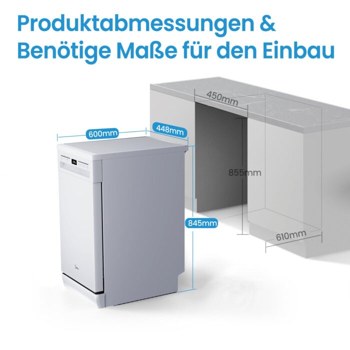 - 【7 Verschiedene Spülprogramme】Ob stark verschmutztes Geschirr oder empfindliche Gläser, ein Midea-Geschirrspüler bietet Flexibilität und Anpassungsfähigkeit an Ihre individuellen Bedürfnisse.