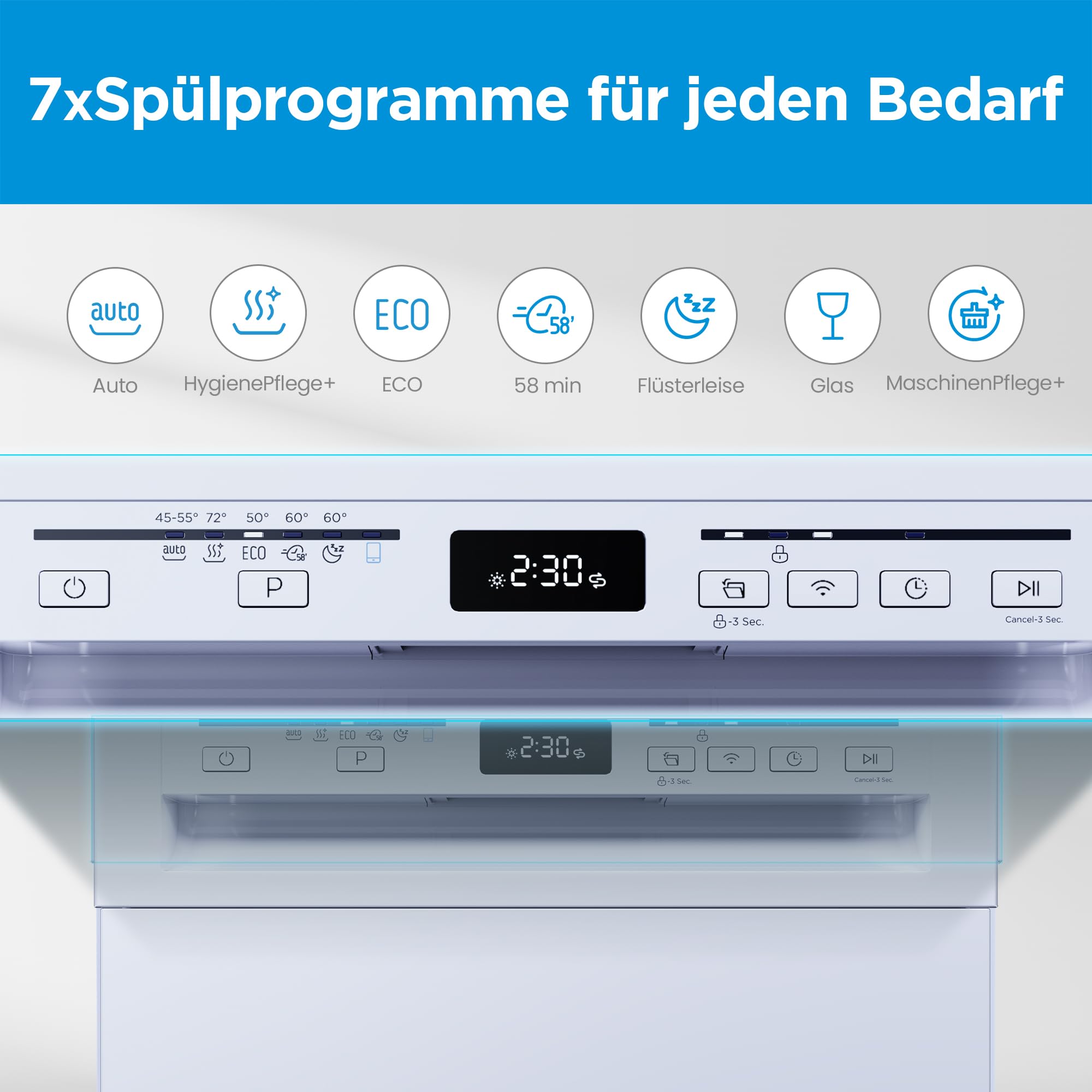 - 【Heimverbindung】Der Geschirrspüler lässt sich ganz einfach per Smartphone oder Tablet bedienen. Dazu gehören Funktionen wie Programmwahl oder Startzeitvorwahl – jederzeit und überall.